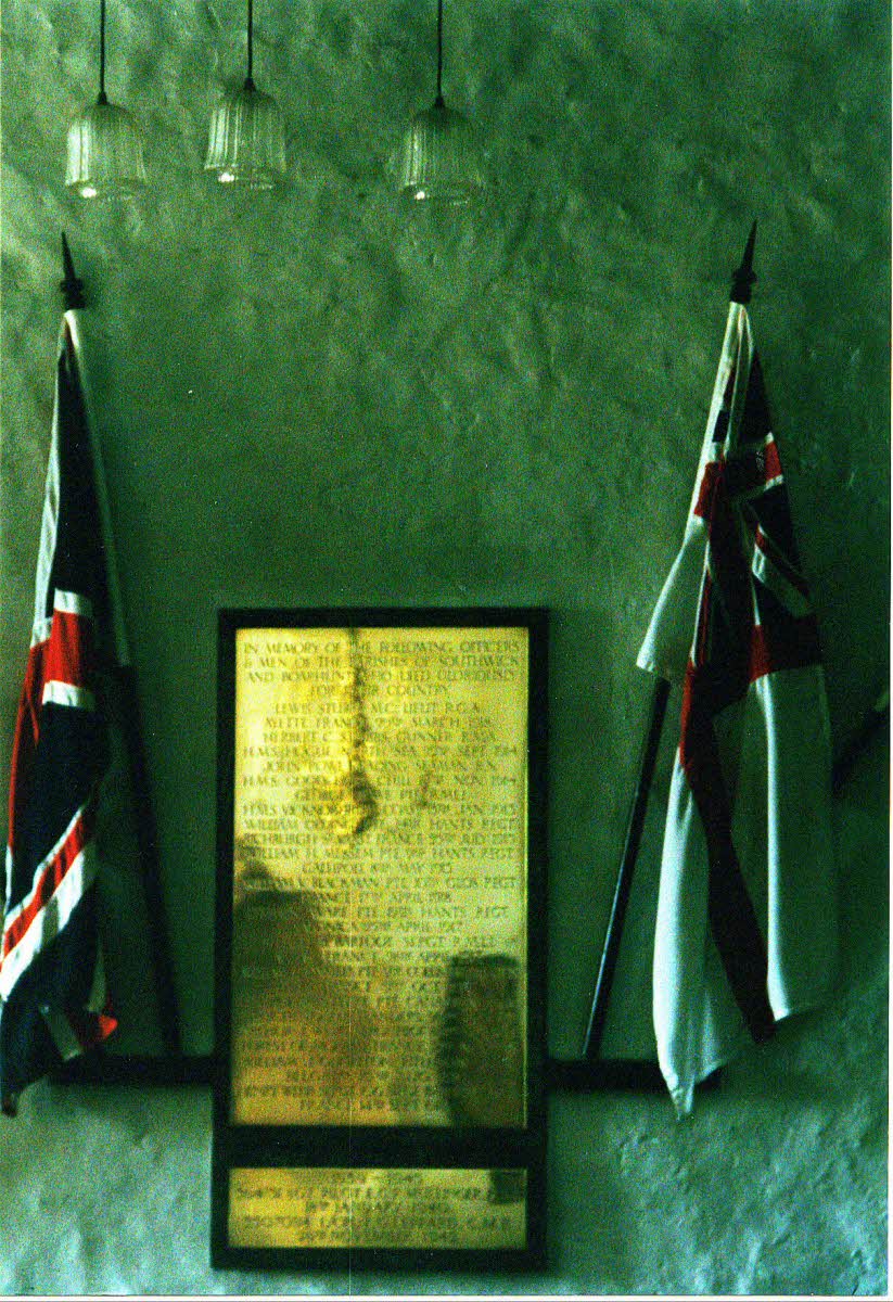 Memorial to Officers and Men of Southwick and Boarhunt who died in two world wars, located in 'St. James without the Priory Gate', Southwick Church, Hampshire. Private Rowe's name is also inscribed on the Portsmouth Naval Memorial.
